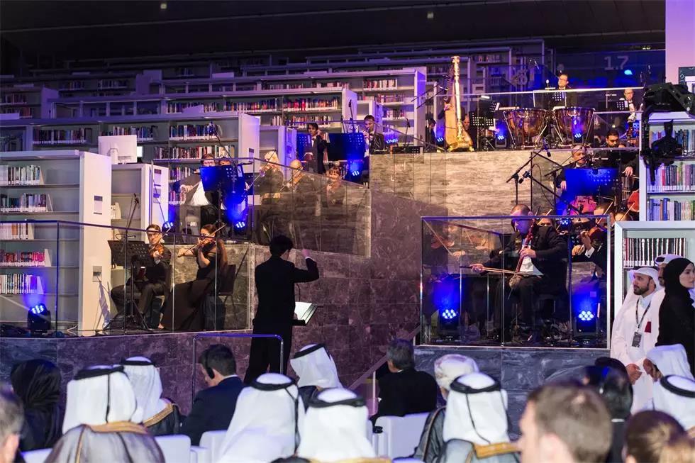卡塔爾愛樂樂團(tuán)現(xiàn)場演奏的是卡塔爾作曲家達(dá)納·阿爾法丹為開幕式創(chuàng)作的一段音樂?;顒踊顒庸九c一位卡塔爾本地的書法藝術(shù)家合作,完成了對活動整體理念的設(shè)計(jì)??ㄋ枃覉D書館的設(shè)計(jì)是以一種深深根植于阿拉伯文化的藝術(shù)形式為基礎(chǔ),并以一種非常現(xiàn)代的設(shè)計(jì)元素作為的表達(dá)方式,在進(jìn)行活動設(shè)計(jì)時也嚴(yán)格地遵循了這樣的設(shè)計(jì)思路,以阿拉伯傳統(tǒng)文化為基礎(chǔ),大量運(yùn)用現(xiàn)代的視覺元素,活動物料作為表達(dá)工具